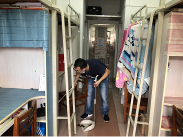 活动中,在朱小焱书记的安排带领下,全体党员同志经宿管员测量体温后进入毕业生宿舍区域,逐间逐间打扫学生宿舍阳台、室内过道、卫生间的卫生,有的同志负责扫地,有的同志负责拖地,有的同志则负责擦窗户和抹桌椅,并做到尽量不动学生宿舍内的物品。经过2个多小时的辛苦劳作,30多间毕业生宿舍整洁有序,焕然一新。