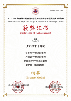 【喜讯】我院学子在第三届全国大学生算法设计与编程挑战赛(秋季赛)喜获佳绩
