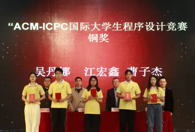 接着,主席台上的领导、老师为优良学风班集体、蓝桥杯、大学生程序设计大赛、挑战杯、国家奖学金、国家励志奖学金、百佳学习标兵奖学金、百佳自立自强奖学金、优秀三好学生、三好学生、考取英语六级证书以及优秀指导老师等先进集体和个人代表进行颁奖。