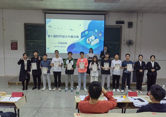 2021年11月27日,互联网金融与信息工程学院在6栋502教室举办2021年互联网“+”年华之第十届“软件设计大赛”决赛,此次大赛由爪哇部落负责承办。学院党总支副书记丘志君、辅导员钟培权等出席了活动,决赛邀请了郭艺辉博士、鲜征征博士和校友陈丽平、冯谭送、陈广镇、黄晓强、林川钰、廖嘉豪、邱泽明、林康杰、陈晓璇、黎书行、吴楚鹏、陈彬、梁雅群、郑俊钦等担任本次比赛评委,七个团队入围参加了此次决赛。学院党总支书记朱小焱、辅导员王思又等近300名师生线上观看了大赛直播,100多名学生到场观看了比赛。决赛由于学礼、刘哲玉同学主持。