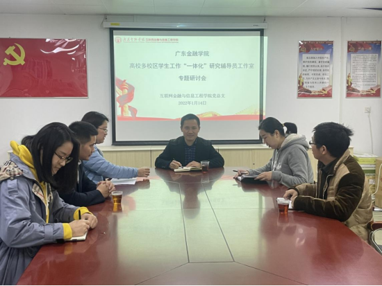 2022年1月14日,我院在学院会议室召开高校多校区永利集团“一体化”研究辅导员工作室专题研讨会,院党总支副书记、工作室主持人丘志君及工作室成员孙海慧、刘闻浩、钟锋、冯晓骏、刘艳等参加了会议。
