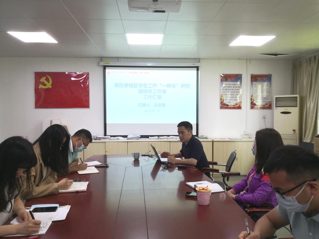 研讨期间,工作室负责人、院党总支副书记丘志君向工作室成员汇报了研究现状、协助学院开展的延伸管理实践活动及下一步的研究方向。他指出,工作室因清远校区而设,为永利集团延伸管理而来,着力在“工作一体化、主体双核化”等“五化”研究上下功夫,助力学院开展“政策延伸、队伍延伸”等“五延伸”,努力推动校本部和校区永利集团的无缝对接,把“三全育人”工作落到实处。