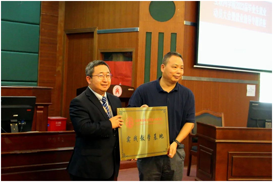 会上,学院党总支书记胡小波为国海证券股份有限公司(广东分公司)授予“实践教学基地”牌匾,期盼校企双方能够在人才培养、实习、就业等方面深入合作。