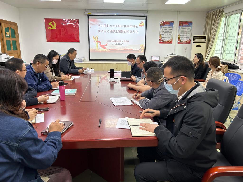 4月25日下午,互联网金融与信息工程学院召开主题教育动员大会,同时专题学习习近平总书记视察广东重要讲话、重要指示精神,传达学校有关工作部署,研究我院贯彻落实意见。全体党政班子、教工支部书记、学生支部书记、辅导员出席会议。党总支书记胡小波在会上发言并进行工作部署。