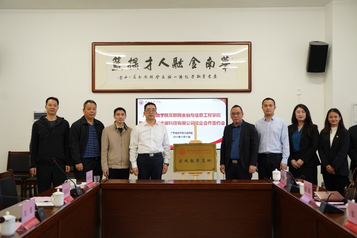 随后,互联网金融与信息工程学院院长吴炎太与广东长实科技集团副总经理曾德茂签订产教融合实践教学基地协议,与会领导为基地揭牌。
