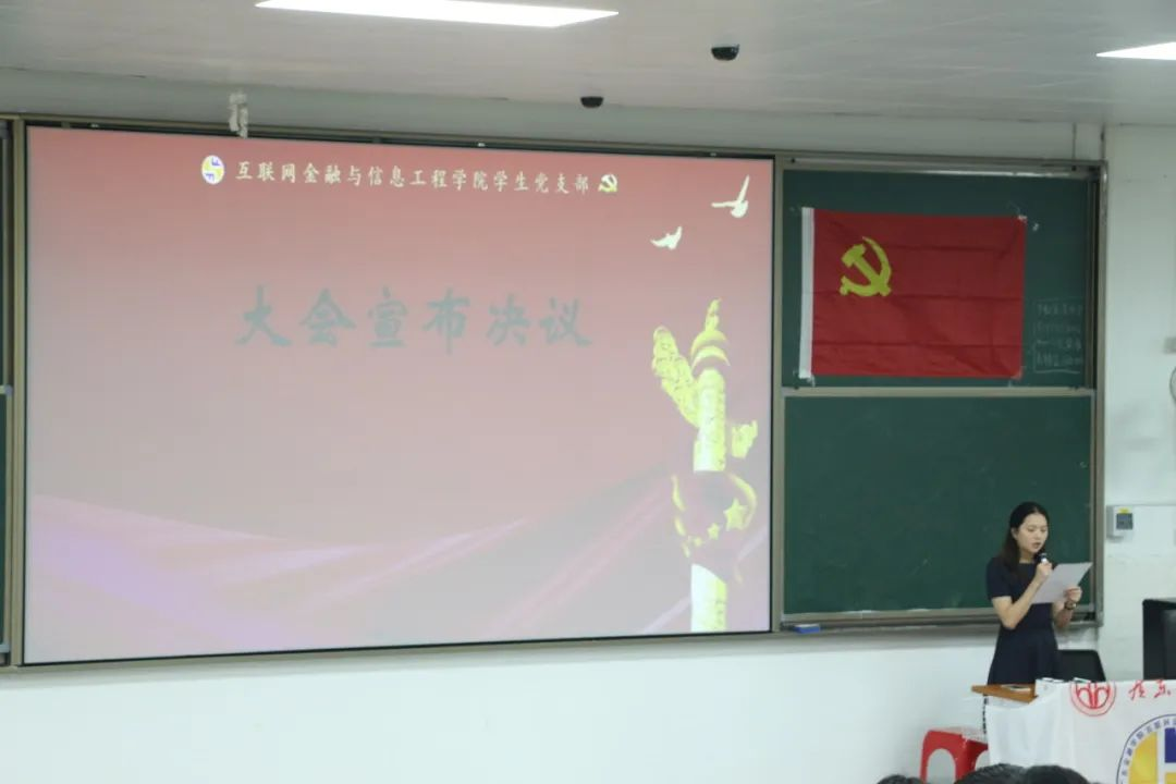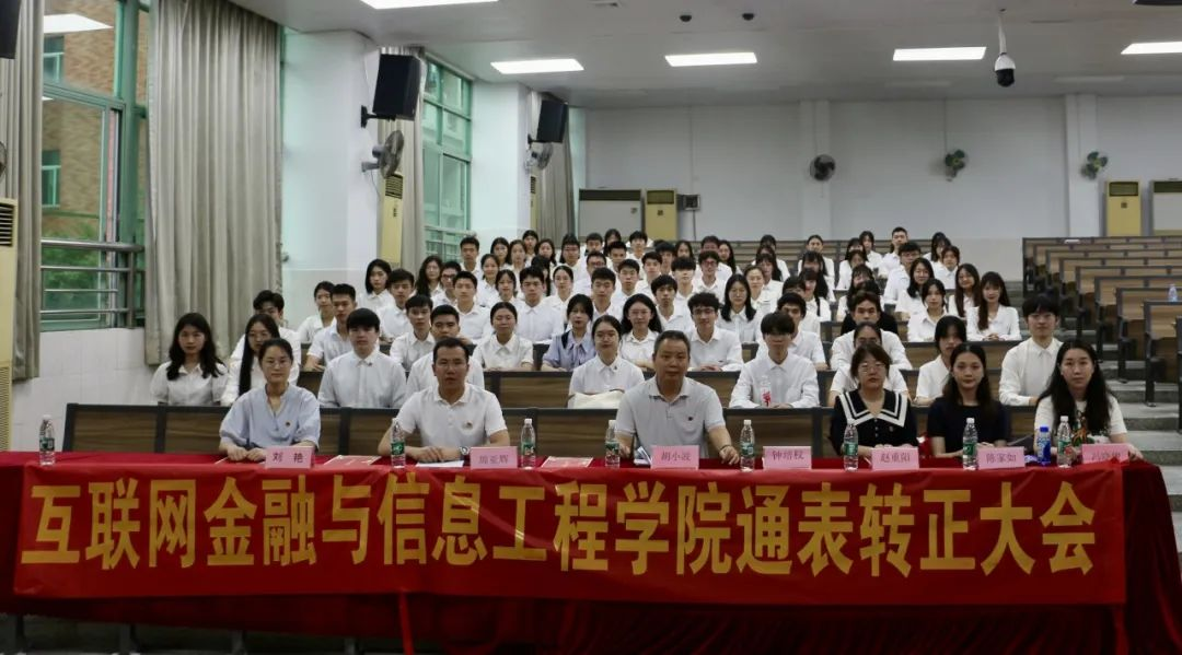 我院2024年上半年学生党支部通表转正大会在南苑6栋召开。互联网金融与信息工程学院党委书记胡小波,各学生支部书记陈家如、钟培权、冯晓骏、周亚辉老师及学院新媒体中心指导老师赵重阳,学生党建中心及心服指导老师刘艳应邀出席,本期通表转正对象以及各支部全体党员参加本次大会。大会由张子健同志主持。