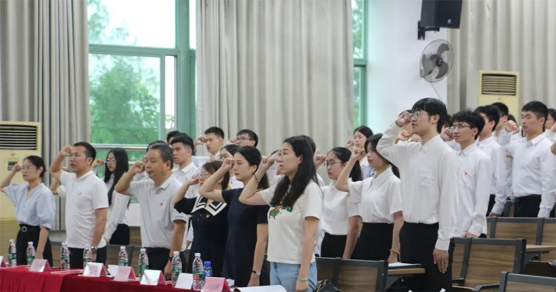 最后,在庄严的党旗下,由萧楷冰同志领誓,预备党员宣读入党誓词,与会师生党员重温了入党誓词,本次通表转正大会圆满落幕。