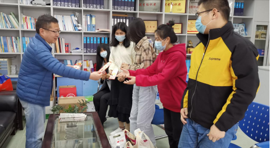 最后,朱小焱书记向留校学生送上节日慰问品,祝大家新春快乐。