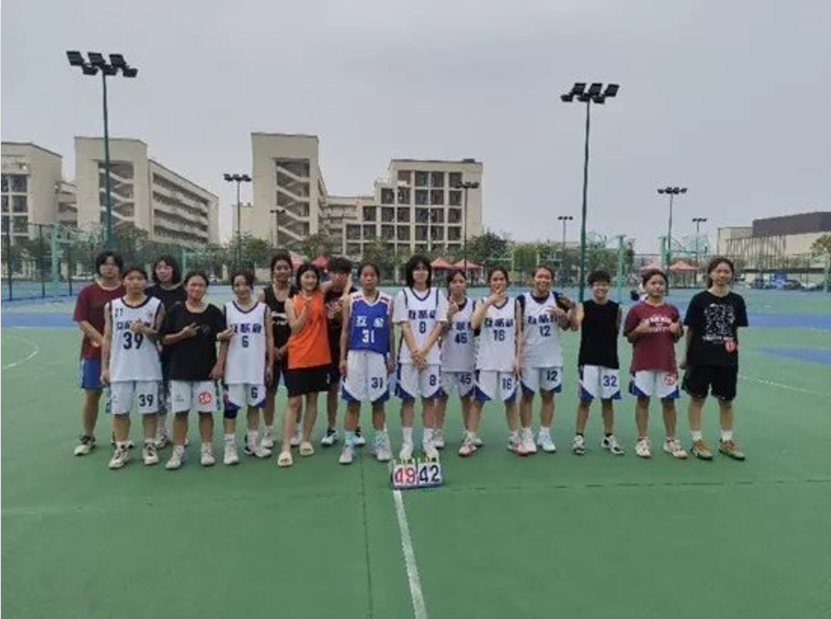 上午同时间,身穿白色球服的校本部女子篮球队和清远校区的女子篮球队的比赛也如火如荼地进行着。双方一开始就开始了积极的拼抢,白队拿球便开始积极跑动,跑出战术,创造空间,给队友制造机会;而清远校区女子篮球队也不甘示弱,他们以默契的配合紧紧缠着进攻的白队,拼尽全力抢下一个个篮板进行反击,最后清远校区女子篮球队以49:42的比分赢下了这场交流赛。