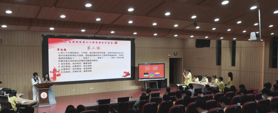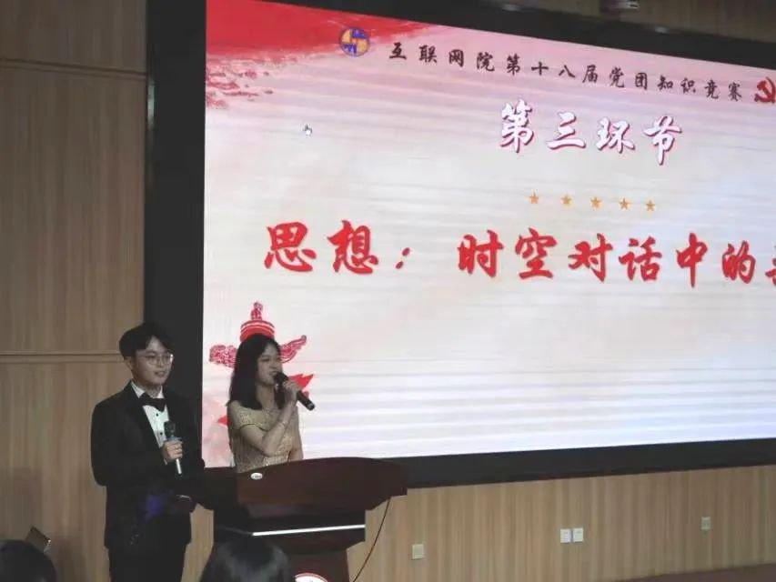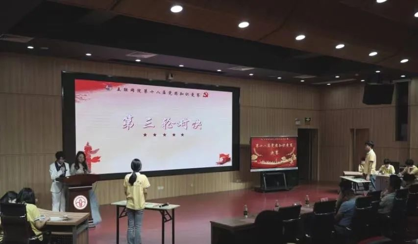 5月29号晚七点齐唱国歌后,第十八届党团知识竞赛正式开始,竞赛共分为5个环节。