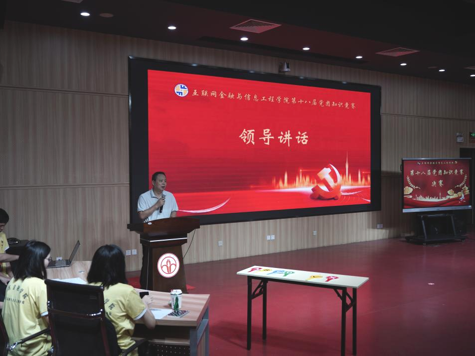 为深入学习贯彻习近平新时代中国特色社会主义思想,进一步丰富我院学子的精神文化生活,引导广大青年知史爱党,互联网金融与信息工程学院于5月29日在广州校区北阶103举办了第十八届以“以青春的名义,追寻党团里的精神星芒”为主题的党团知识竞赛决赛。互联网金融与信息工程学院党委书记胡小波,副书记蔡秋华,辅导员钟培权、陈家如、陈兴、赵重阳、刘艳等几位老师出席本次党团知识竞赛。