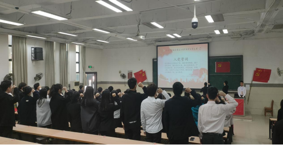 最后,在高林辉同志领誓下,通表和转正对象宣读了入党誓词,与会党员重温了入党誓词。