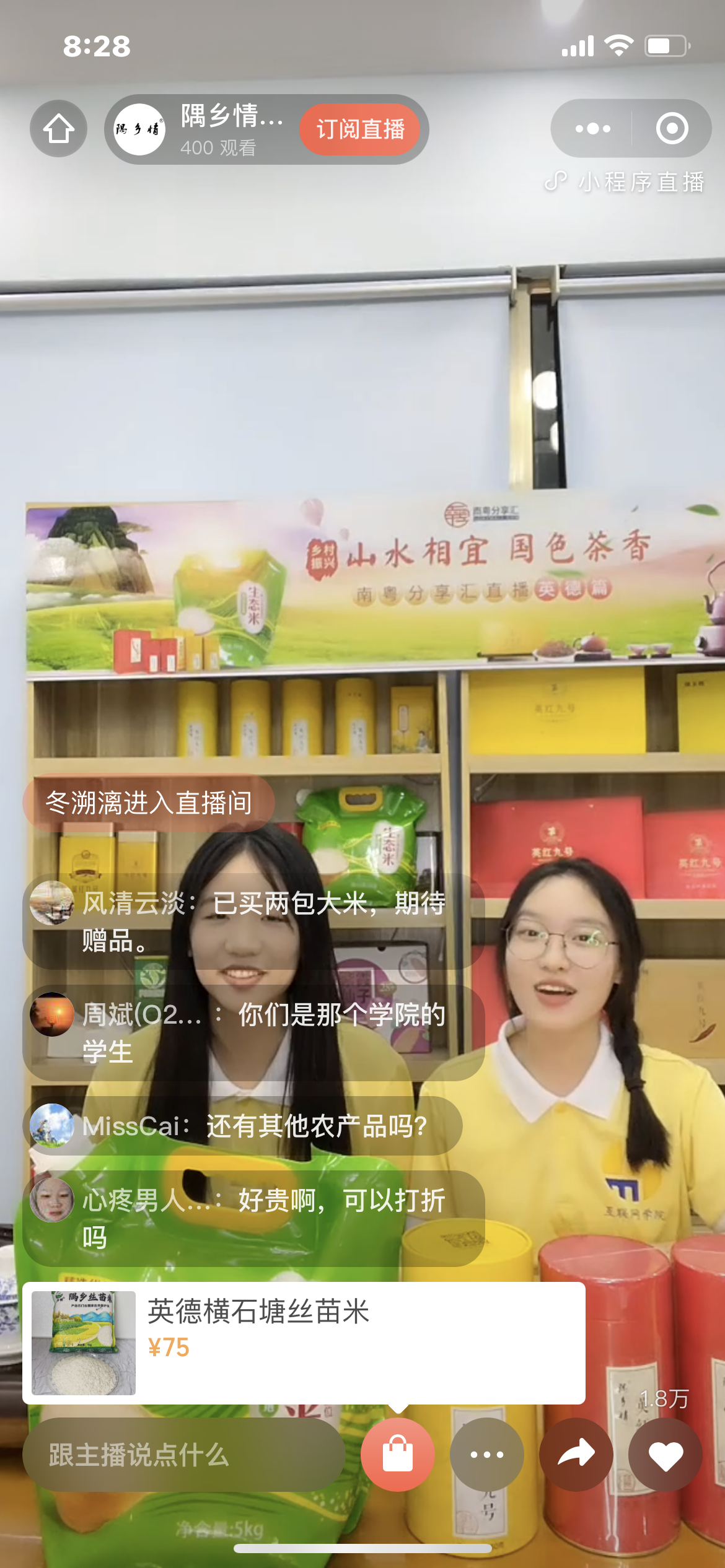据悉,本次入驻龙华村的我院“三下乡”团队成员,均来自22级电子商务专业。驻村一周以来,团队已运用学校所学专业知识,成功进行了两场直播,观看人数达1500人次,直接创收6398元。