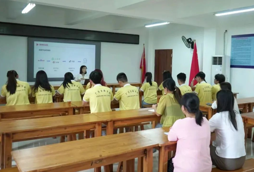 廖晓副教授作为带队老师之一为当地电商工作人员和我院“三下乡”队员授课,她全面讲解了电商运营的相关专业知识,并对直播过程中遇到的问题进行实地指导,给予解决方案,助力乡村振兴。